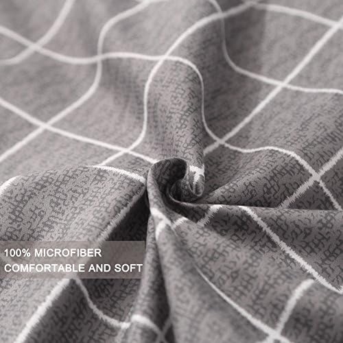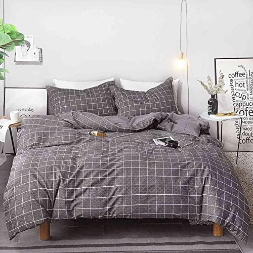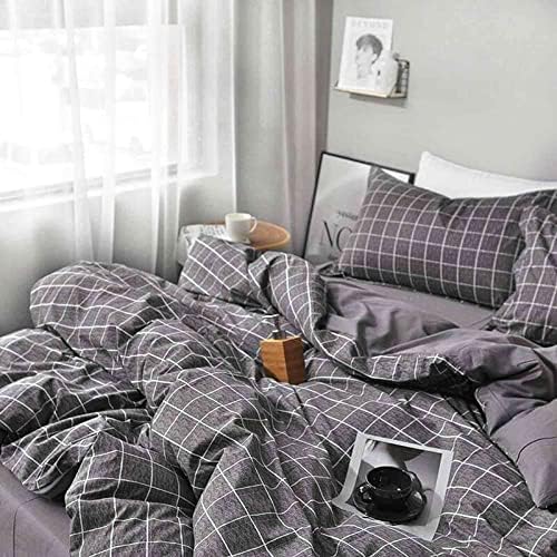 Nanko Queen Duvet Cover Set Gray, 3 Pieces 1200 TC Luxury Microfiber Down Comforter Quilt Bedding Cover with Zipper Closure, Ties - Organic Modern Style for Men and Women, Plaid