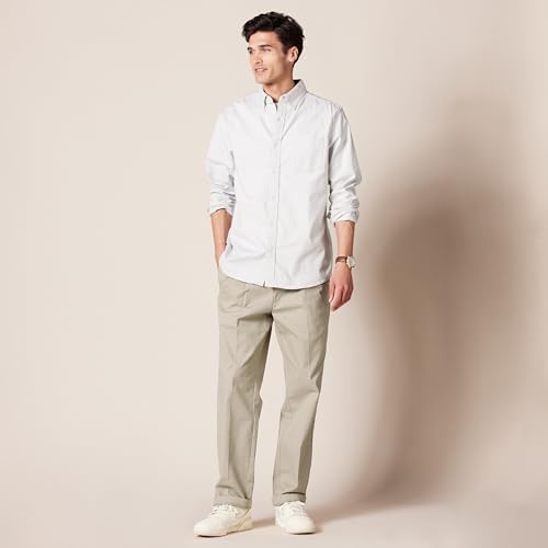 Amazon Essentials men's classic slim fit wrinkle resistant pleated twill cotton pants (with enlarged and lengthened options)
