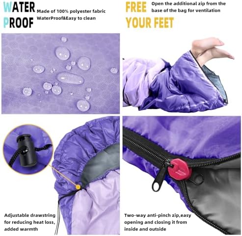 Sleeping Bag for Adults, Girls, Boys - 3 Season Warm & Cool Weather Lightweight Waterproof Camping Bag for Hiking, Outdoor Travel