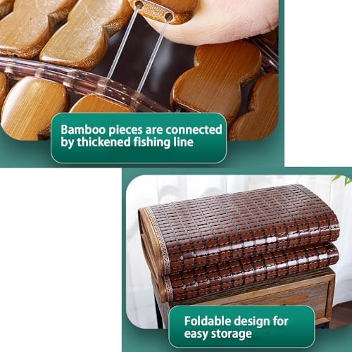 Natural Bamboo Summer Sleeping Mat, Foldable Cooling Mat for Bed, Home Quick Cooling Textile Rattan Mat, Bamboo Sleeping Mat for Home School Dormitory, Brown