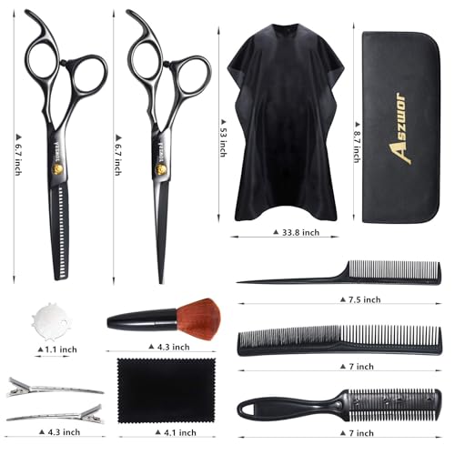 Hair Cutting Scissors Set by Aszwor Hairdressing Shears Kit 12 PCS Professional Haircut Scissors Kit with Hair Cutting Scissors, Thinning Shears, Multi Use Haircut Kit for Home Salon Barber