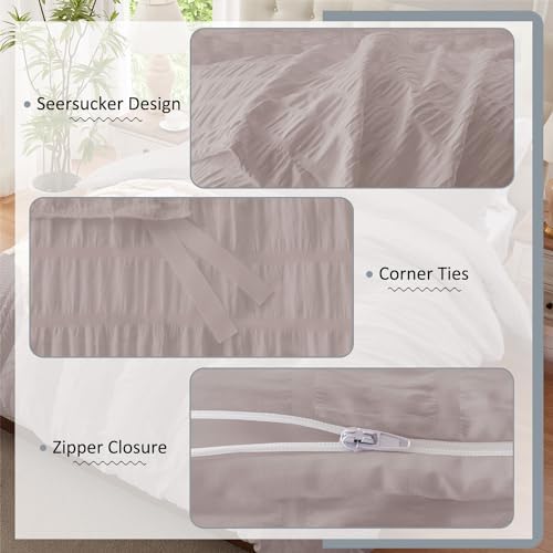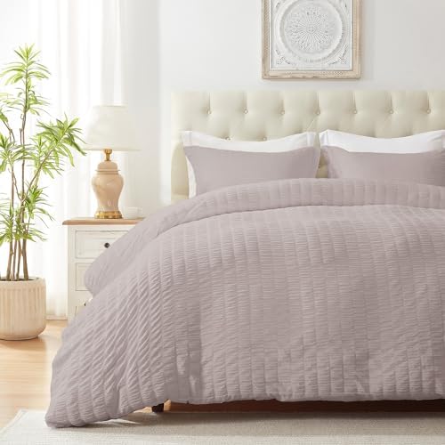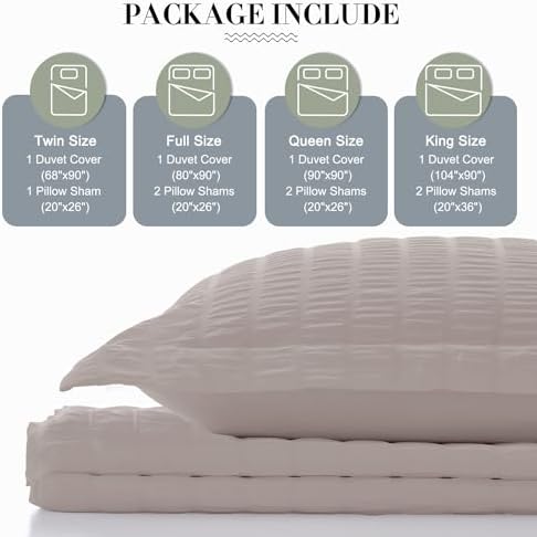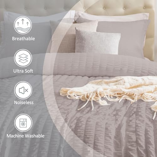 Cozyide Light Grey Twin Duvet Cover, 2 Pieces Bedding Duvet Covers, Soft Breathable Seersucker Duvet Cover Set with Zipper Closure and Corner Ties (1 Duvet Cover 68"x90" + 1 Pillow Sham 20&#34