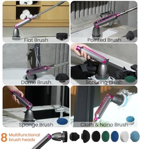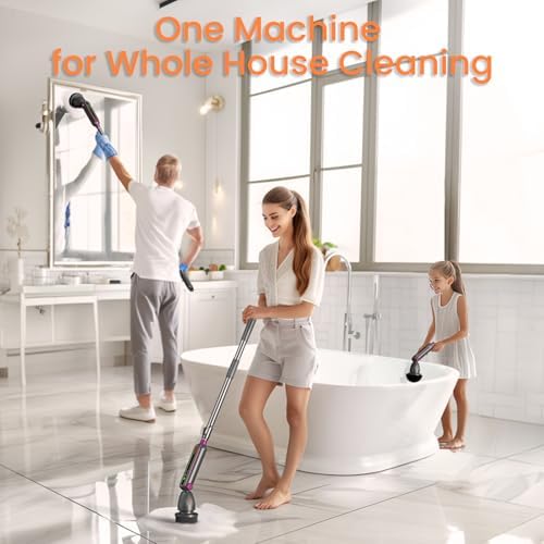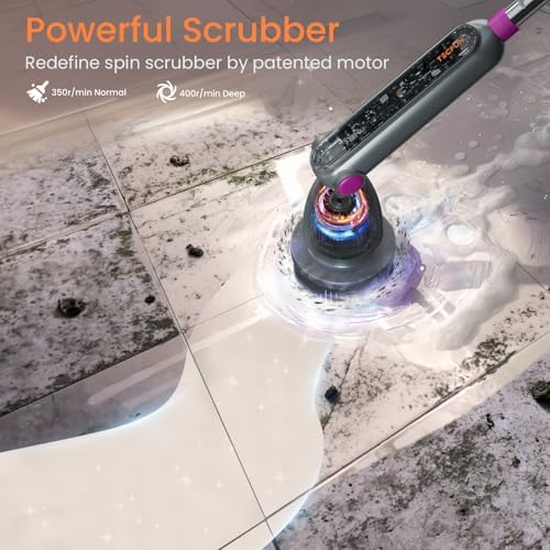 TECFUN Electric Spin Scrubber 16 in 1 Cleaning Brush with Adjustable Angles & Heads, Bathroom Power Scrubber with Extendable Handle, Interactive LED, Cleaning Supplies for Toilet,Kitchen,Shower-Gr