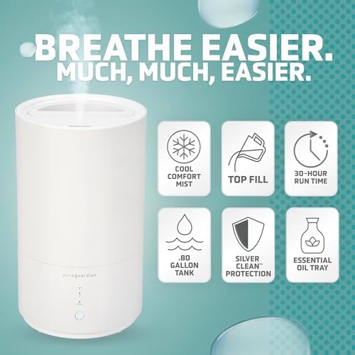 PureGuardian 30-Hour 0.80 Gal. Top Fill Cool Mist Ultrasonic Humidifier for Home with Aromatherapy Tray, Covers 320 Sq. Ft, White, H950AR