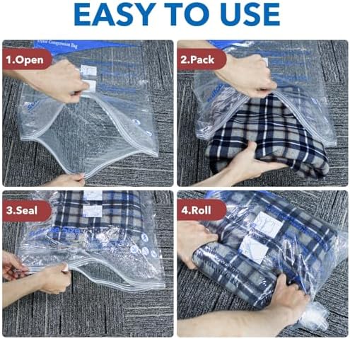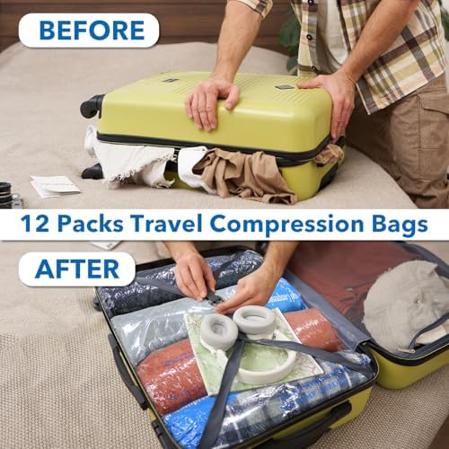 12 Pack Compression Bags for Travel Vacuum Seal Storage Bags for Luggage & Dirty Clothes Travel Packing Space Saver Bags for Suitcases & Home Organization MEIQIHOME