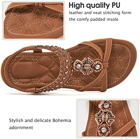 Alicegana Womens Sandals Shoes Comfort Walking with Non Slip on Casual Summer Beach Shoes Dress Ankle Elastic Jeweled Bohemian Flats