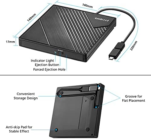 Amicool External DVD Drive USB 3.0 USB C CD Burner CD\/DVD +\/-RW Optical Drive, Slim Portable DVD CD ROM Rewriter Writer Duplicator for Laptop Desktop PC Windows 11\/10\/8\/7 MacBook Mac Linux OS App