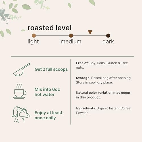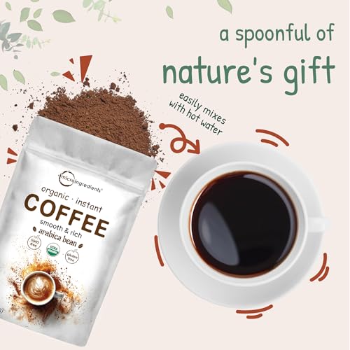Organic Instant Coffee, 1lb Powder Premium Arabica Coffee Beans Source Medium to Dark Roast Natural Fresh Flavor Smooth & Rich Non-GMO, Gluten Free