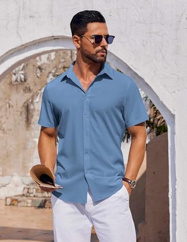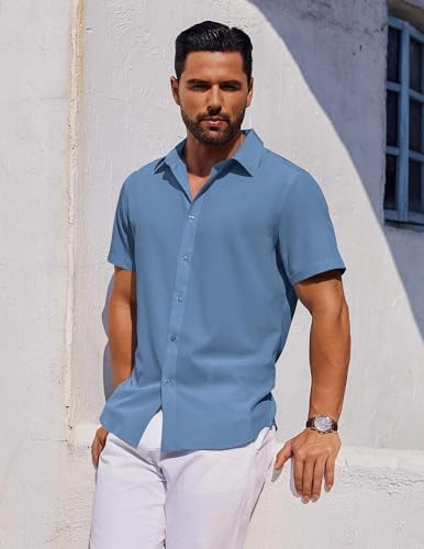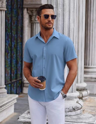 COOFANDY Mens Short Sleeve Button Down Shirts Casual Summer Shirt Untucked Dress Shirts