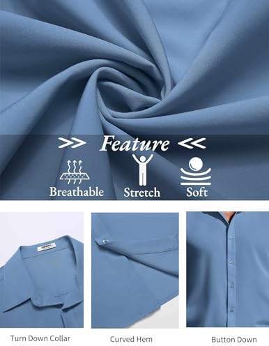 Premium Fabric: Experience the Perfect Shirt for the Sunny Days Ahead! Crafted from a lightweight, breathable, soft fabric, this mens casual button up shirt is your secret weapon against the heat. This Men's Summer Shirt is the perfect blend of affordability and premium quality Timeless Design: Mens Short Sleeve Button Down Shirts comes with button-down closure, regular fit, short sleeve, turn down collar, solid color. Features a hint of elasticity, allowing it to effortlessly adapt to various body types Dress it up,dress it down: This Casual Untucked Shirt is your versatile sidekick. Whether paired with chinos or jeans for casual wear or matched with formal pants for office occasions,it will keep you looking and feeling your best Various Occasions: Mens Casual Dress Shirt Short Sleeve is Perfect for casual daily wear, work, office,business,dating, wedding, streetwear, vacation outfits. Don't miss out on the opportunity to upgrade your wardrobe with this must-have piece Warm Tips: US Size. Please refer to our SIZE CHART of product description for selection. Machine Wash. If you have any questions about this Mens Button Up Shirts, please contact us