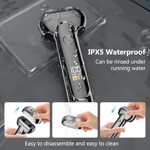 RUIM Electric Razor for Men, Wet\/Dry Rotary Shaver, Waterproof Beard Trimmer with Two Blades and Type-C Fast Charging