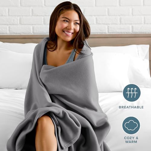 Bare Home Polar Fleece Blanket - Throw - Grey - Warm & Cozy - Premium Fleece for Bed, Sofa, Camping, Travel and Cold Nights - Lightweight Blanket (Throw, Grey)