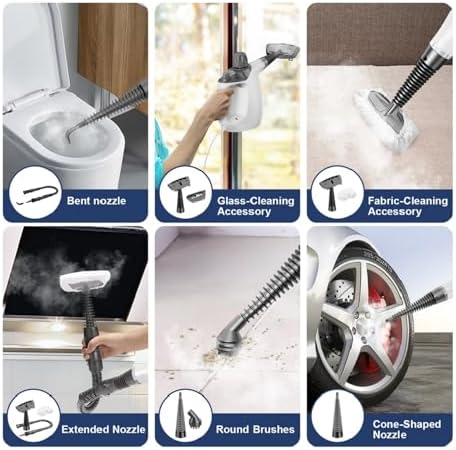 Handheld Steam Cleaner, Steam Cleaner with 16 PCS Accessory & Safety Lock, 500ML Large Capacity Natural Surface Steam for Cleaning, Multipurpose Steamer for Home, Car, Bathroom, Grease (White)