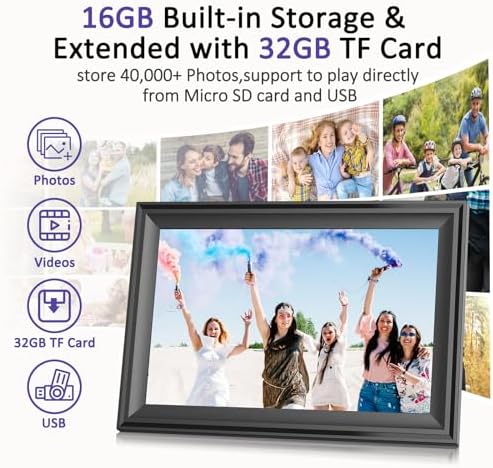 Digital Picture Frame, 10.1 Inch WiFi Photo Frame Electronic, IPS HD Display Touch Screen,16GB Storage, Wall Mountable, Auto-Rotate, Share Photos and Video via Uhale App