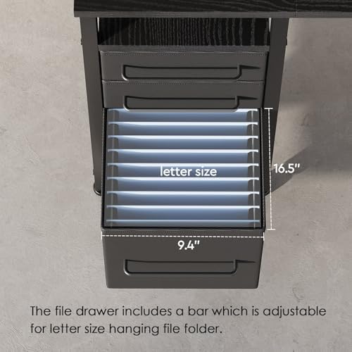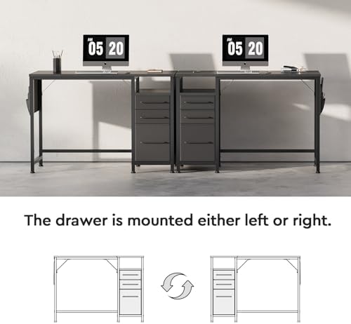 Maihail Maihail Small Desk with Drawers, 40 inch Computer Desk with Shelves, Writing Desk with Storage, Small Office Desk with Metal Frame, Black