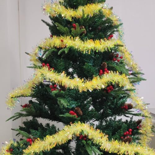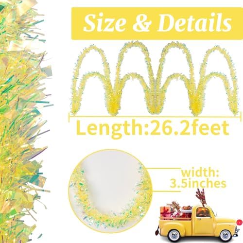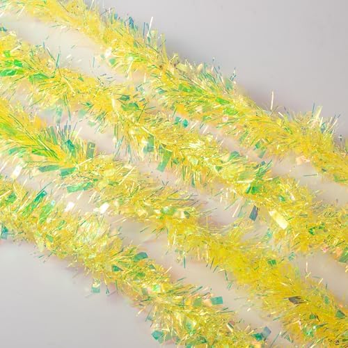 26.2 Ft Tinsel Garland Decoration for Holiday Tree Walll Home Office Event, Christmas, Birthday, Halloween, Party Decorations, Fluffy Twist for All-Season Indoor Outdoor Events - Yellow