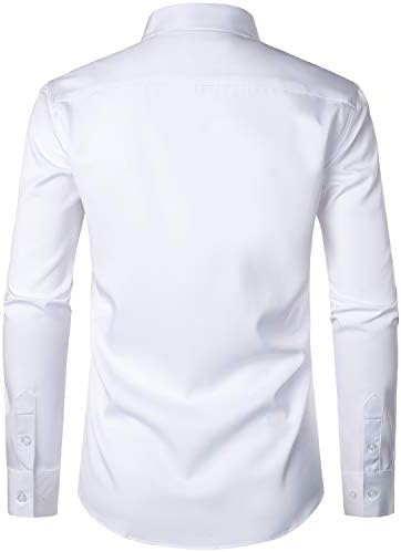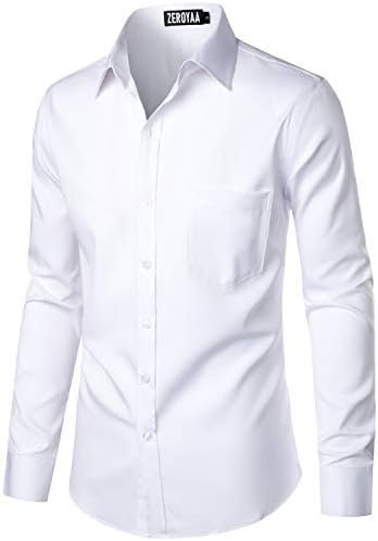 ZEROYAA 男式都市时尚休闲商务修身长袖纽扣正装衬衫带口袋