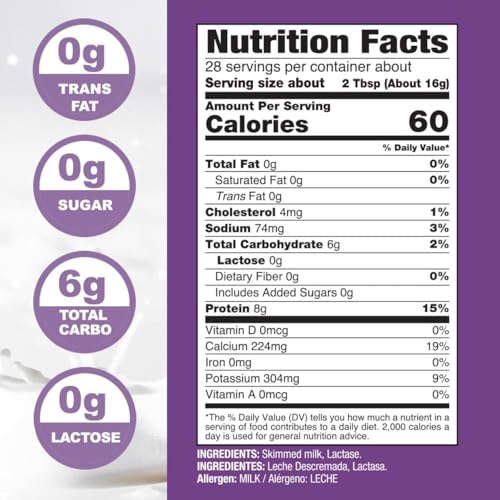 Nonfat Dry Milk Powder for Baking & Coffee 16oz - Fat Free & Lactose Free Powder for Adults, Non-GMO, rBST Hormone-Free, Good Source of Protein and Calcium, Substitute For Liquid Milk (1 Pack)