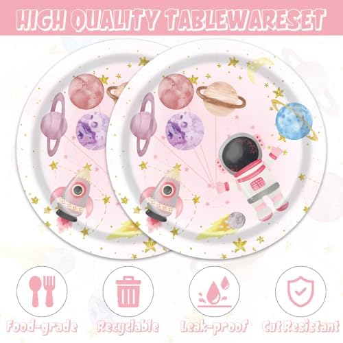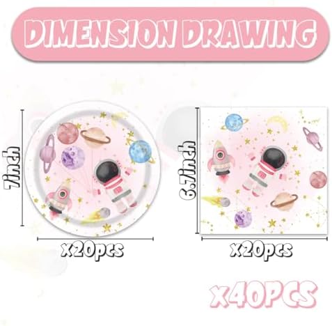 ACIYHN 40Pcs Outer Space Birthday Decorations Pink Moon Star Galaxy Planet Tableware Set Disposable Plates Napkins Serves 20 Baby Shower Two The Moon Birthday Girl Party Decorations