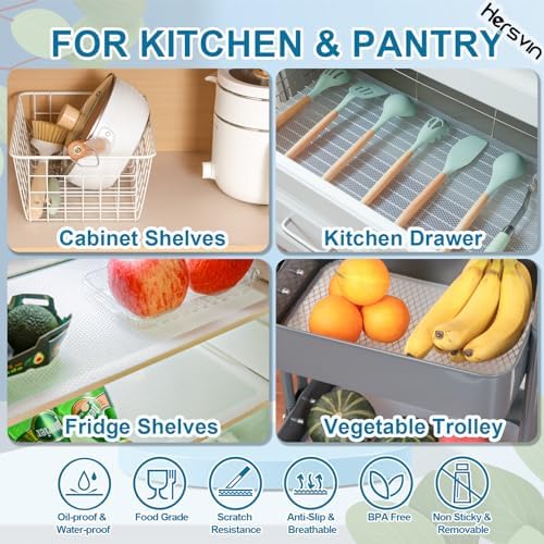 Hersvin Shelf Liners, 22in x 20ft Kitchen Drawer Mats, Non-Adhesive EVA Cupboard Protector, Cabinet Lining, Refrigerator Liner (Clear Dot, 56x610cm)