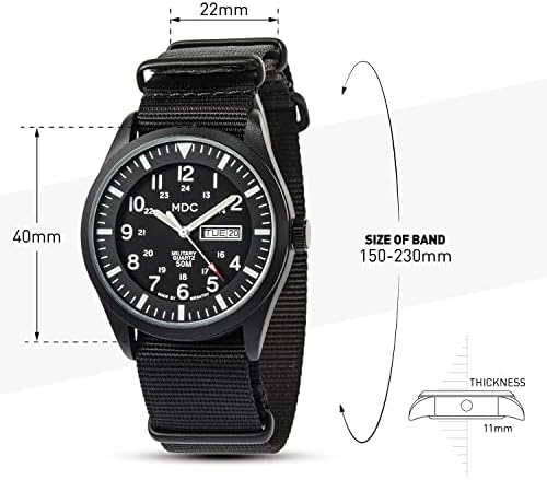 Infantry Men's Wrist Watch, Field Military Watches for Men Analog, Black Tactical Outdoor Sport Work Wristwatch, Waterproof Date Day 12\/24 Hour with Army Nylon Band