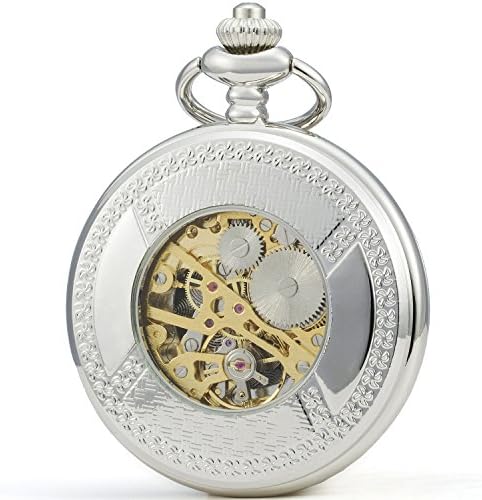 SEWOR Vintage Elegant Carving Pocket Watch Mechanical Hand Wind (Silver)