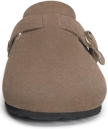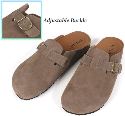Intini Womens Suede Clogs Mens Leather Mules Cork Footbed Sandals with Arch Support