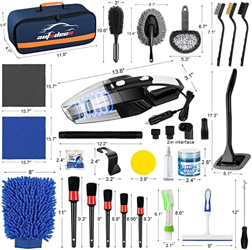 AUTODECO 39Pcs Car Cleaning Wash Kit Interior Detailing Cleaner Kit with High Power Handheld Vacuum, Brush Set, Windshield Tool, Duster, Towels, Tire Brush, Complete Car Care Tools, Blue