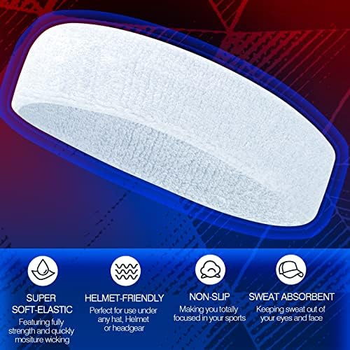 Sweatbands Sports Headband for Men & Women, Moisture Wicking Hairband Athletic Towel Headbands Cotton Head Sweat Bands for Running, Cycling, Yoga, Spa