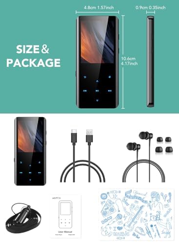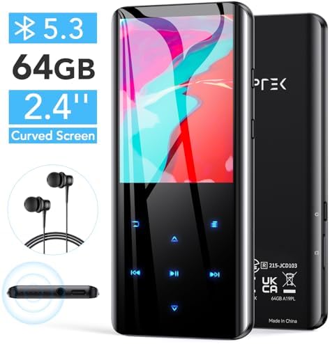 AGPTEK 64GB MP3 Player with Bluetooth 5.3, A19PL 2.4" Curved Screen Portable Music Player with Speaker Lossless Sound with FM Radio, Voice Recorder, Supports up to 128GB, Black