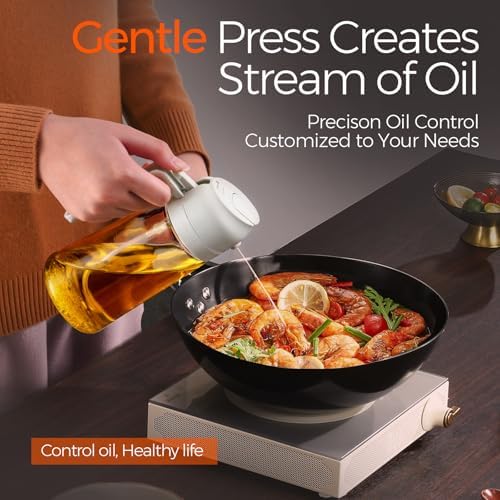 YARRAMATE 16oz\/470ml Glass Olive Oil Sprayer for Cooking with Stickers, 2 in 1 Oil Dispenser for Kitchen Gadgets, Food Grade Premium Spray Bottle for Salad, Frying, BBQ (Creamy White)