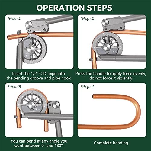 Antstone 1\/2\u201D OD Tubing Bender Roller Type Pipe Bender 180° HVAC Copper Aluminum Tube Bending Tool for Air Conditioning Refrigeration Repair