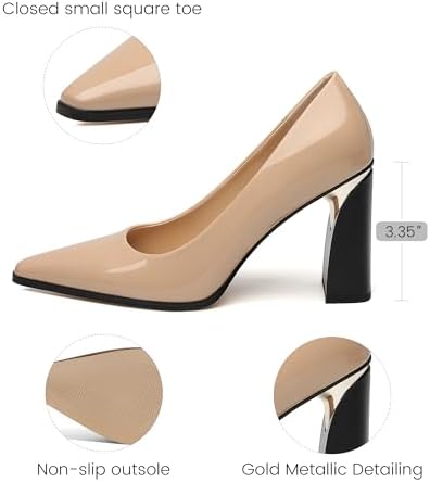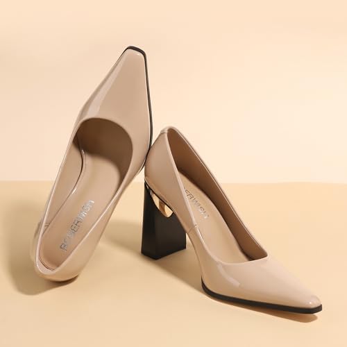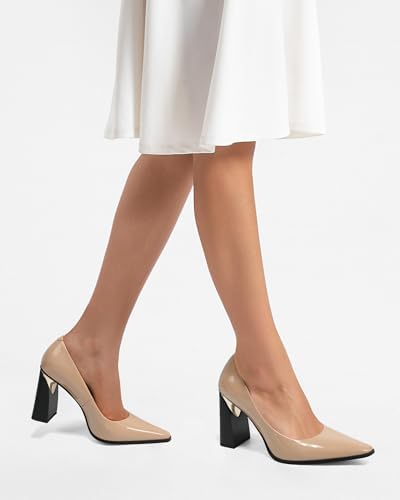 ROSERWISH High Chunky Block Heels for Women, Closed Pointed Toe Slip-On Pumps, Retro Vintage Style, 3.5" Comfortable Dress Shoes for Party, Work, Office, Prom & Wedding