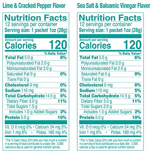 The Happy Snack Company Crunchy Chickpeas Variety Pack 24 x 1 oz ( Sea Salt & Balsamic Vinegar Flavor and Lime & Cracked Pepper Flavor). 5g Plant Based Protein & 120 Cals. Gluten, Nut &amp