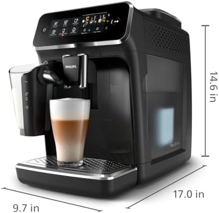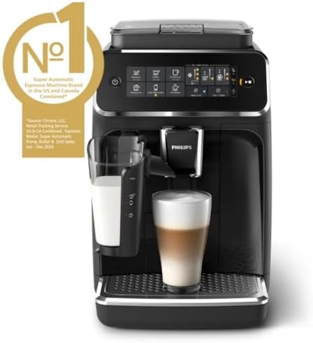 Philips 3200 Series Fully Automatic Espresso Machine, LatteGo Milk Frother, 5 Coffee Varieties, Intuitive Touch Display, 100% Ceramic Grinder, AquaClean Filter, My Coffee Choice, Black (EP3241\/54)