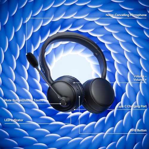 LEVN Bluetooth Headset with Microphone, Wireless Headset with Mic & Mute Button, 60 Hrs Working Time, Noise Cancelling Bluetooth Headphomes 5.3 Multipoint Connect to Cell Phone\/Mobile\/Laptop\/Ta