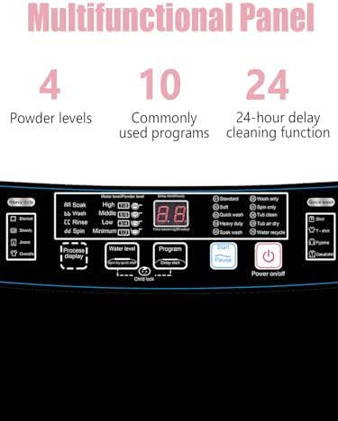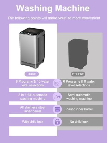 KRIB BLING Full-Automatic Washing Machine 25 lbs Portable Washer 10 Wash Program & 8 Water Level with LED Display,Drain Pump, Ideal for Apartments, RV, Camping, Grey