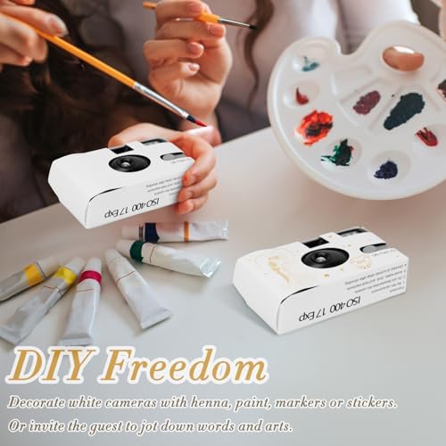 6 Pack Disposable Cameras for Wedding Bulk, 35mm White Single-Use Film Cameras with Flash, One Time Cameras for Birthday Party Baby Shower Gathering Wedding Travel, lSO 400 Film,17 Exposures