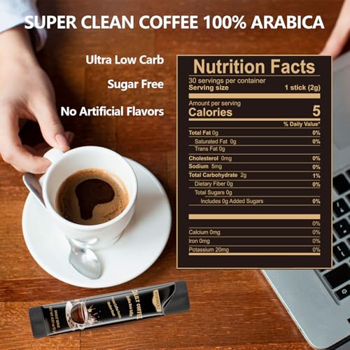 Instant Coffee Packets 30 Packs, Medium Roast Sugar Free Black Coffee Single Serve, 100% Arabica Beans (2oz \/ 60g), Hot or Iced Instant Coffee Powder Bulk for Camping Fitness Office Holiday Gifts