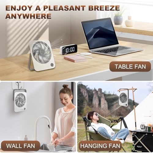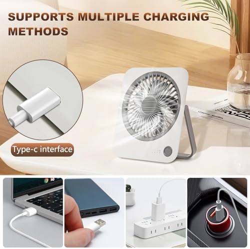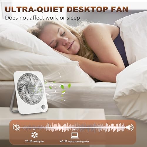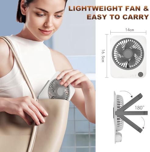 FITENOUGH 可充电旅行风扇 - 超薄静音个人风扇 适用于巡航 4 档 180° 折叠,紧凑冷却适用于办公室卧室,露营旅行必备品(白色)