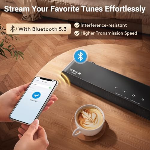TONOR Sound Bar for Smart TV with Dolby Atmos, 2.1 Deep Bass Soundbar for TV Speaker\/PC\/Phonew, 5.3 Bluetooth, DSP Technology, 3 Modes, Home Theater Audio Sound System Work with HDMI eARC\/Opt\/AUX\