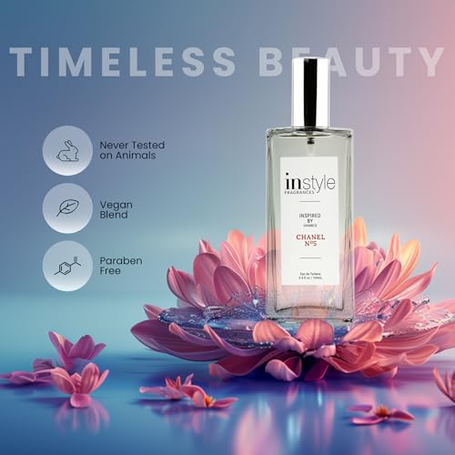 Instyle Fragrances, Inspired by Chanel's Chanel No. 5, Eau de Toilette, Fragrance for Women, Vegan, Paraben Free, Never Tested on Animals, 3.4 Fluid Ounces