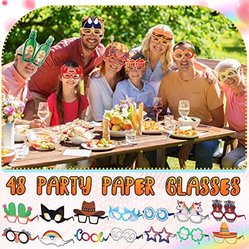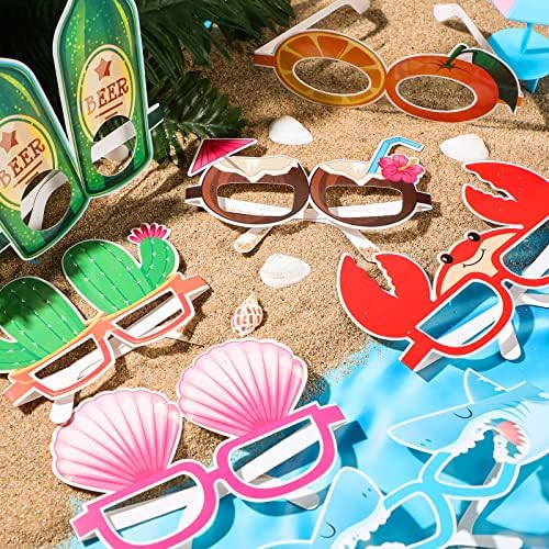 48 Pcs Luau Party Eyeglasses Funny Hawaiian Glasses Luau Paper Sunglasses Bulk Fancy Photo Booth Props for Kids Adults Luau Party Decoration Summer Beach Favor Supplies