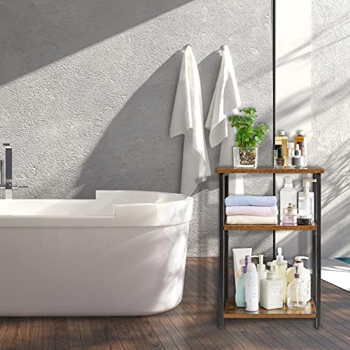 IBUYKE Side Table,3-Tier End Table, Industrial Nightstand Small Table with Storage Shelf, for Bedroom, Living Room, Hallway, Rustic Brown UTMJ402H