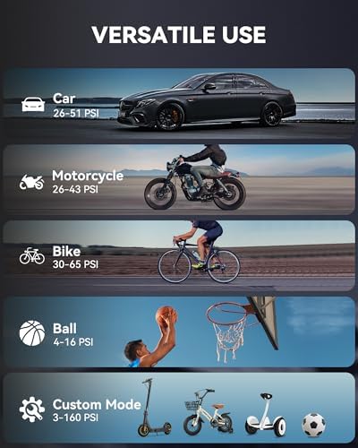 AsperX 160PSI Cordless Tire Inflator Air Compressor \u2013 Portable Rechargeable Air Pump with LCD Display, Auto Shut Off, LED Light & Carrying Case Fast Inflation for Car Tires, Bike, Motorcycle