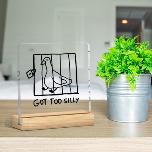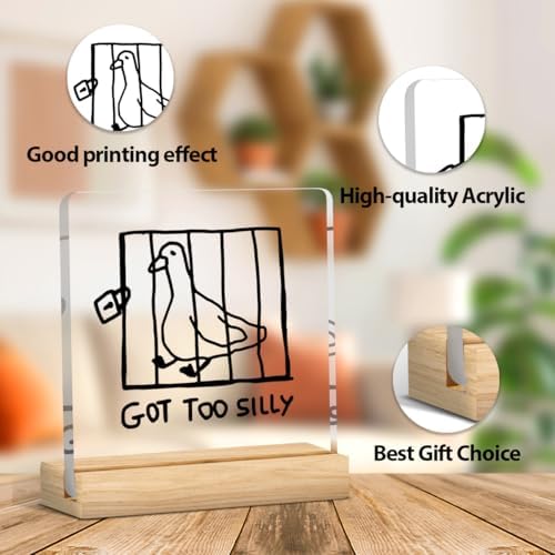 Got too Silly Funny Goose Pun Acrylic Sign Silly Goose Decorations Goose Lover Gift for Women Men Silly Goose Birthday Gifts Humor Silly Goose Decor 4 x 4 inch