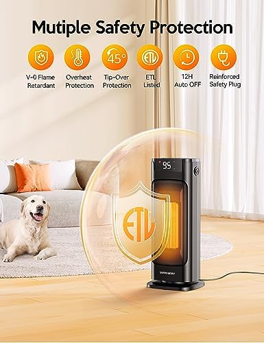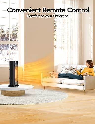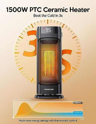VAGKRI Space Heater, 1500W Portable Electric Heater with Thermostat, Remote, 3 Modes, Timer, Oscillating, Overheating & Tip-Over Protection, Fast Ceramic Heater for Bedroom Office Garage Indoor Us