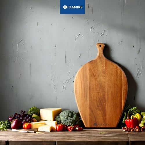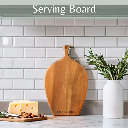 Daniks 100% Natural Acacia Wood Cutting Board 14x9\u201D \u2013 Extra Thick, Heavy Duty Wooden Chopping Board for Kitchen & Serving \u2013 Perfect for Fruits, Vegetables, Meat, and Bread \u2013 BP