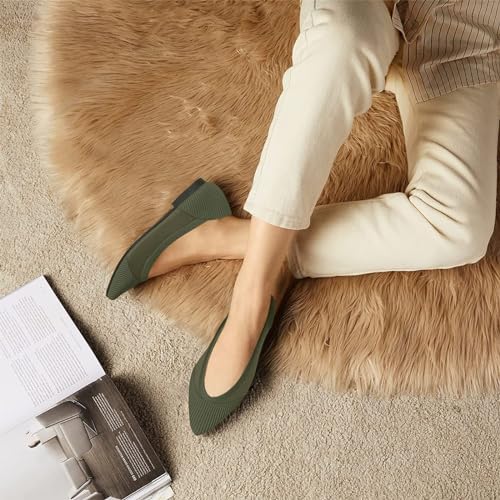 TINGRISE Women's Flats Shoes Pointed Toe Knit Ballet Comfortable Dressy Mesh Flat