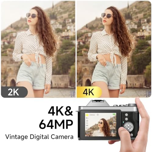 ASTYPHER 4K Retro Vintage Digital Camera: 64MP Retro 3\u201D IPS Screen Camera with 6X Optical Zoom, WiFi Transfer Autofocus Rechargeable Retro Camera for Travel Vlogging and Gifts